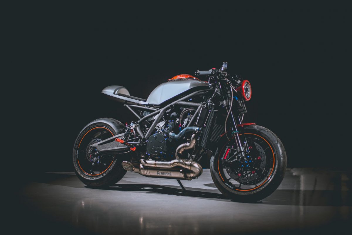 Dino kertoo pyörän rakentamisen kestäneen noin vuoden ajan. Hän halusi 1970- ja 1980-lukujen ulkonäköä pyörään, joten muovikatteet ja hiilikuidun käyttö julistettiin pannaan heti lähtöviivalla. KTM RC8:n moottori ei vaikuttanut riittävän härskiltä, niin lähtökohdaksi valittiin sen R-versio, jota ryyditettiin tehtaan Power Parts -viritysosilla. Maksimikierrosluku muutosten jälkeen on 11 300 r/min.