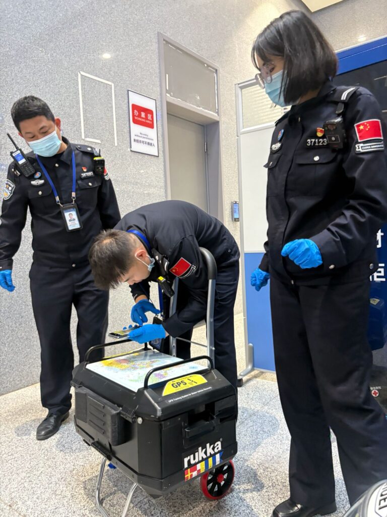 Matkaan päästiin ja muutaman tunnin jälkeen saavuttiin Kiinan raja-asemalle. Oltiin melkein päästy jo tullista ohi, kun virkailijat alkoivat kiinnostumaan laatikoittemme kannessa olevista isoista maailmankarttatarroista, jossa maat olivat merkitty väreittäin… mikä ei välttämättä ollut hyvä juttu. Ihmettelimme mistä kiikastaa.