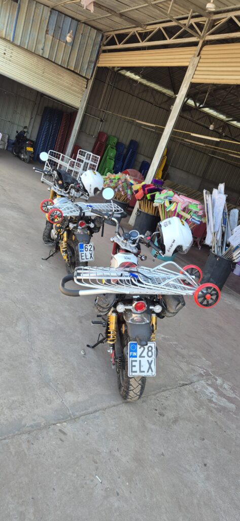 Väliin mainittakoon kiitos Hondan maahantuoja Brandtille, joka auttoi osaltaan paperien hankinnassa joita ei nyt kuitenkaan suunnitelmien muuttuessa tarvittu. Mutta ei tämä tähän nyt voinut tyssätä! Tarkoitushan oli kiertää maailma näillä vehkeillä. Se oli se juttu.