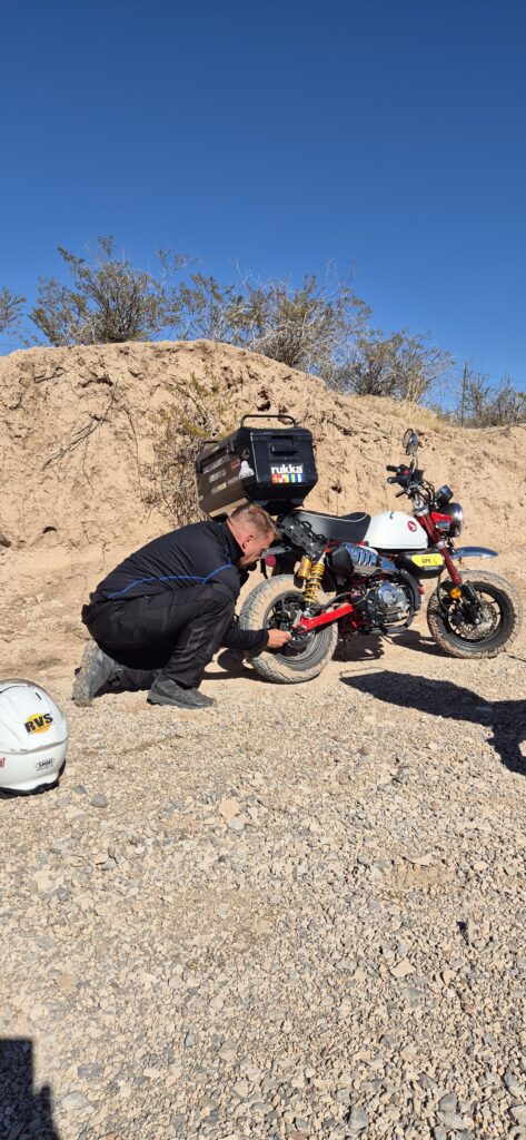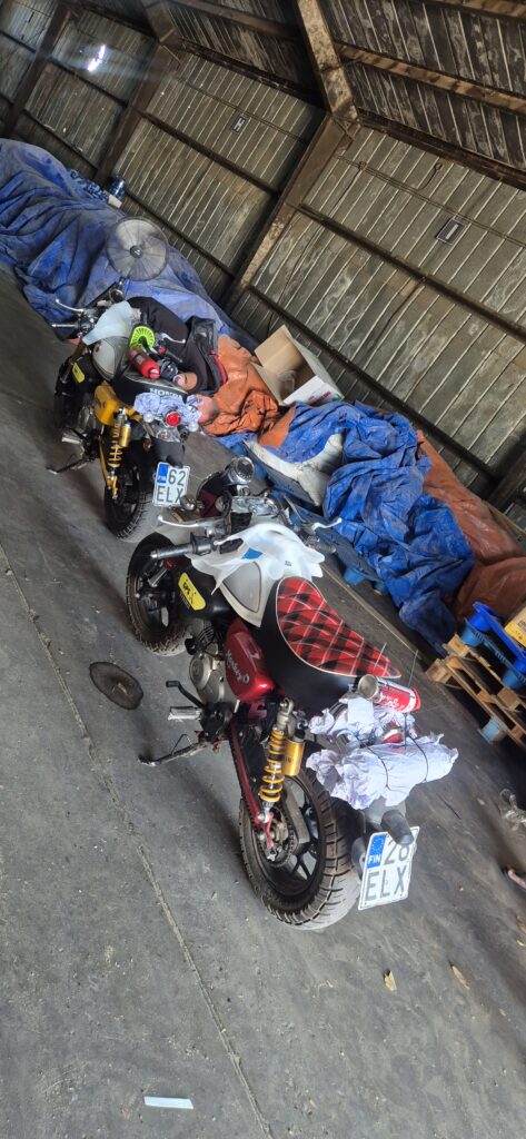 Tarkoitus oli jatkaa matkaa heti, kun saisimme asiat selviksi huolintayhtiön kanssa ja Mankit lähetyskuntoon. Lähetyskunto tarkoitti tankit tyhjäksi, mikä meni ajamalla, akun navat irti, ohjaustangon ja peilien irrotus sekä tietysti irrotettiin tavara- ja puhelinlataustelineet, jotka lähtivät mukaamme “Amerikan Mankeihin”. Mietimme myös parempien takaiskareiden mukaan ottamista, mutta jäi vähän epäselväksi ohjeistus iskunvaimentimien kuljetuksesta lentokoneessa. Joten hylkäsimme ajatuksen.