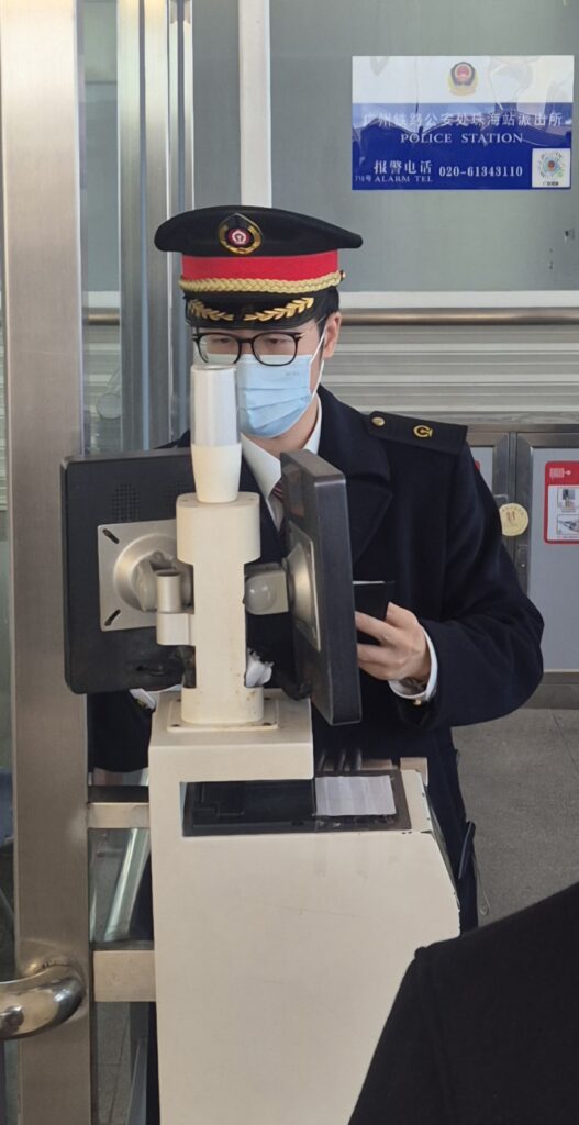 Kumpikaan ei koskaan ollut käynyt Kiinassa ja nyt siihen avautui hyvä tilaisuus. Vientianesta kulki juna Kiinaan. Siispä jatkoimme raiteilla matkaa. Juna pysähtyi rajalla ja matkustajat ohjattiin tarkastuksiin.