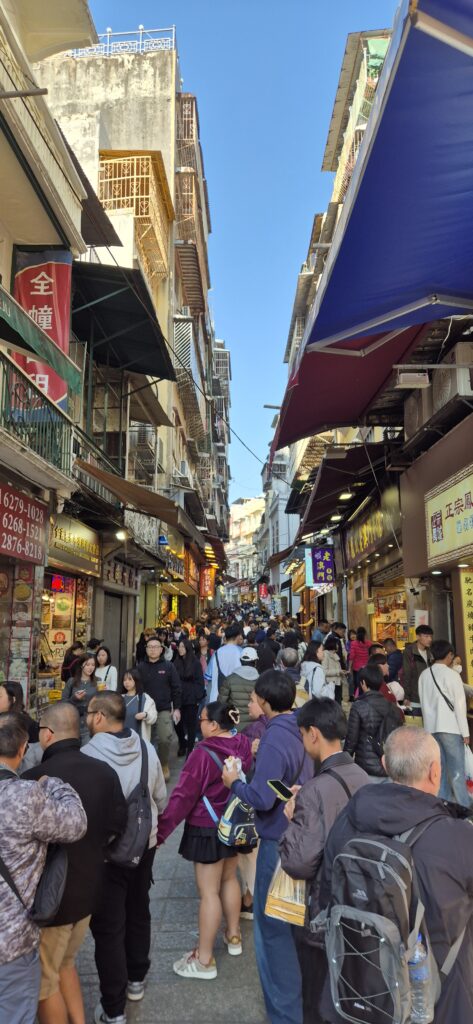 Nyt parin päivän junamatkan jälkeen olimme taksimatkan päässä Kiinan erityishallintoalue Macaosta, jota Kiinan Vegasiksikin lukuisista kasinoistaan johtuen kutsutaan. Sitähän se kyllä olikin, vaikka silloin vielä meillä ei Vegasista kokemuksia ollutkaan. Macaossa vietimme pari päivää kaupunkia kierrellen.