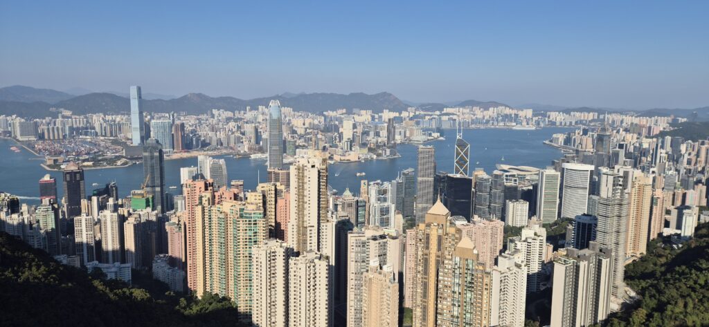 Hong Kong Islandilla kaupungin maasto oli melko mäkistä. Ja korkeimmalta kohdalta The Victoria Peakilta oli mahtavat maisemat koko kaupungin ylle. Patikoimme ylös, mutta alas palasimme Peak Tramilla. Funikulaarijunalla, joka ajelee porukkaa ylös alas. Kiinan, Macaon ja Hongkongin vierailuun taisi viikko vierähtää ja kieltämättä jäi vähän lyhyeksi. Mutta kyllä siinäkin ajassa jo jonkun käsityksen alueista sai.