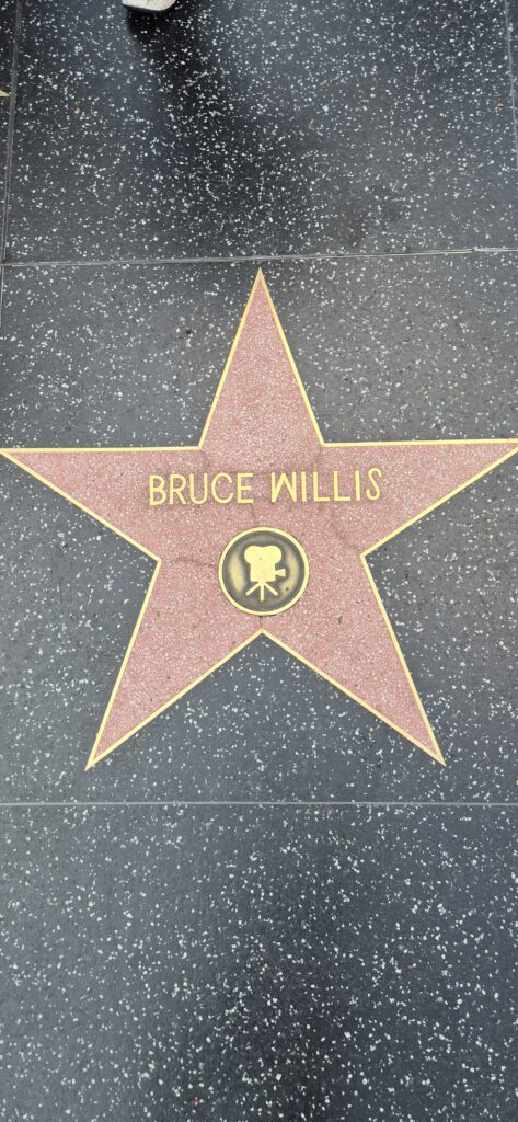 Pitihän se käydä ne suosituimmat paikat mm. Universal Studios, Hollywood Hills, Beverly Hills, Griffithin observatorio, Rodeo Street ja Walk of Fame, josta tietysti piti etsiä Schwarzeneggerin tähti. Ja Keanu Reevesin ja Kevin Costnerin ja Nicholsonin ja Bruce Willisin ja Chuck Norrisin ja Tom Hanksin ja…. Oli hieno aurinkoinen päivä reippailulle, joten kahlasimme kaikki tähdet läpi. Yli 2800 tähteä. Matkaa kertyi noin kuusi kilometriä.