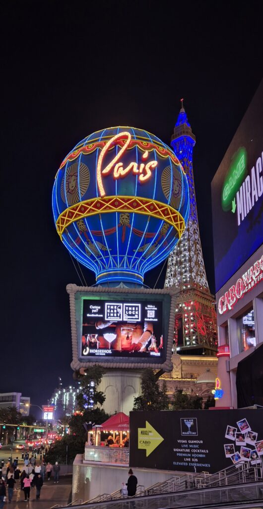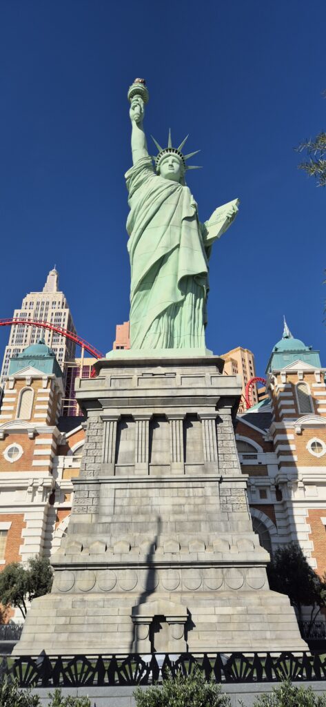 Las Vegasiin saavuimme parin ajopäivän jälkeen. Ja todellakin, niin kuin oli monesti kuullut. Keidas keskellä autiomaata. Kasinoita, hotelleja ja hotellikasinoita. Niin vieri vieressä, väliin rakennettu yhdyskäytäviä, ettei kadulle tarvinnut edes astua. Myös monorail kulki kaupungin halki ja kuljetti uhkapelureita kasinolta toiselle.