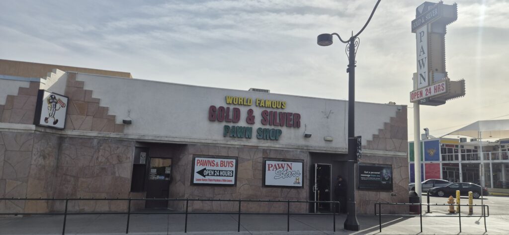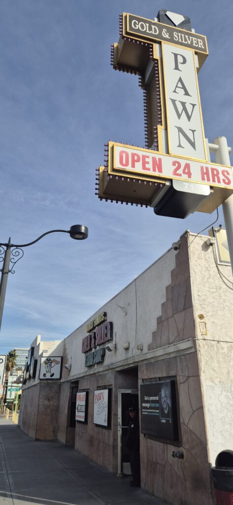 Pimeän tultua kaupunki syttyi loistoonsa. Kaikki mahdollinen oli valaistu. Käytiin myös arvostelemassa Bellagion suihkulähdeshow. Ja olihan se näyttävä! Poikettiimpa vielä tv:stäkin tutussa, Harrisonin perheen omistamassa Gold & Silver Pawn Shopissa. Jospa oltaisiin nähty julkkiksia, mutta eivät nyt olleet paikalla.