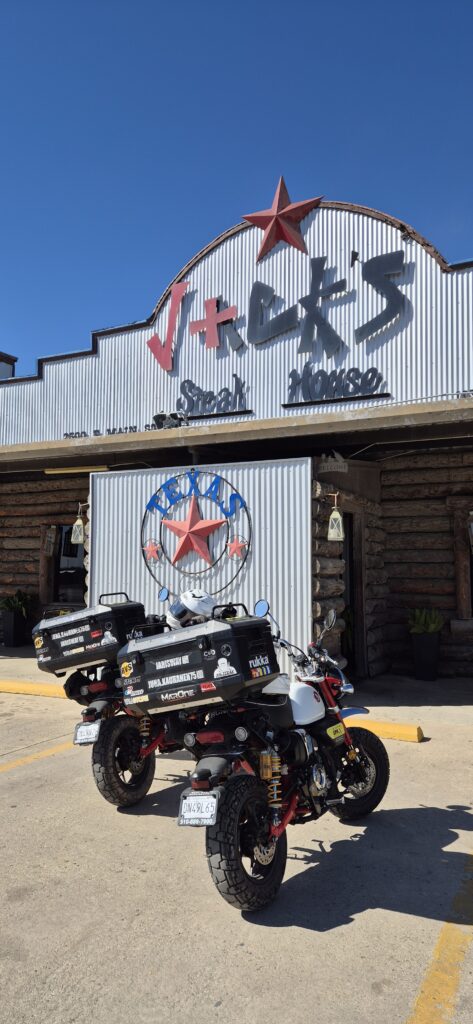 Houstonissa majoituimme pieneen motelliin suuren NRG Park stadionin viereen. Siellä sattui olemaan seuraavana päivänä ohjelmassa Monster Jamit. Suomessakin muutaman kerran olleet mutta meiltä vielä näkemättä. Tosin ei kauaa. Otettiin saman tien liput ja käytiin katsomassa. Ihan mielenkiintoinen kokemus. Eikä vain ne autot, vaan tapahtuma kokonaisuudessaan. Seurata suurta amerikkalaista tapahtumaa innokkaiden fanien kannustaessa suosikkejaan sylit täynnä syötävää, jota oli “väliajalla” käyty hamstraamassa. Yritimme mekin löytää jotain terveellistä, mutta palasimme tyhjin käsin. Tapahtuma oli monille selvästikin jokavuotinen traditio. Houstonissa vaihdoimme uudet öljyt koneisiin ja totuttuun tapaan motellin pihalla. Olihan jo taas mittariin 2000 mailia kerääntynyt.
