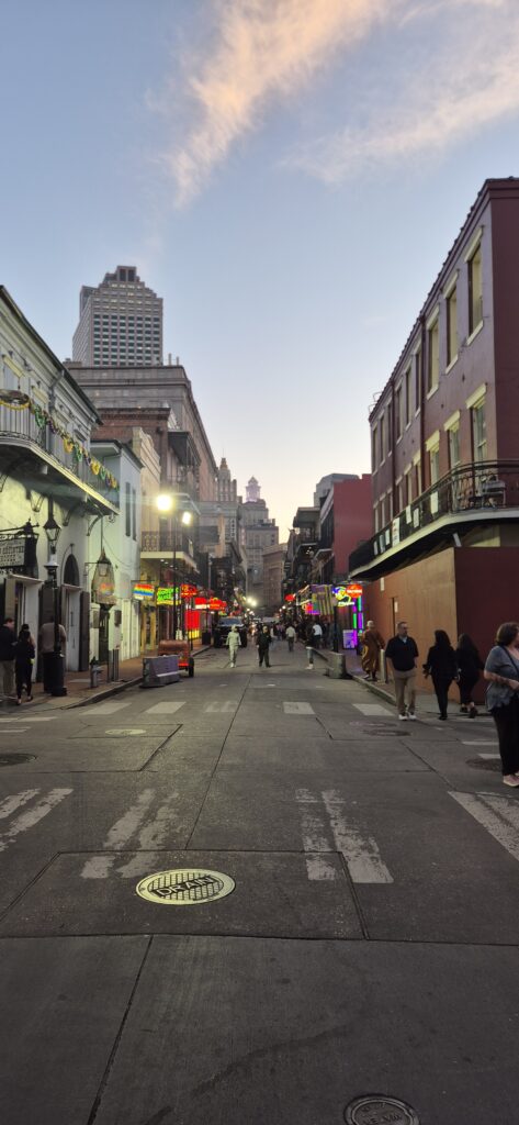 New Orleansissa tulimme tietenkin katsomaan kaupungin tunnetuinta katua, Bourbon Streetiä. Saimme buukattua kelpo hotellin aivan vierestä. Bourbon Street on reilu kilometrin mittainen historiallinen katu, joka kulkee kaupungin vanhimmassa osassa sijaitsevien ranskalaiskortteleiden läpi. Päiväsaikaan aika hiljainen, mutta iltaisin se suljetaan autoliikenteeltä ja katu herää henkiin lukuisten yökerhojen ja jazz-klubien täyttyessä live-musiikin ystävistä.