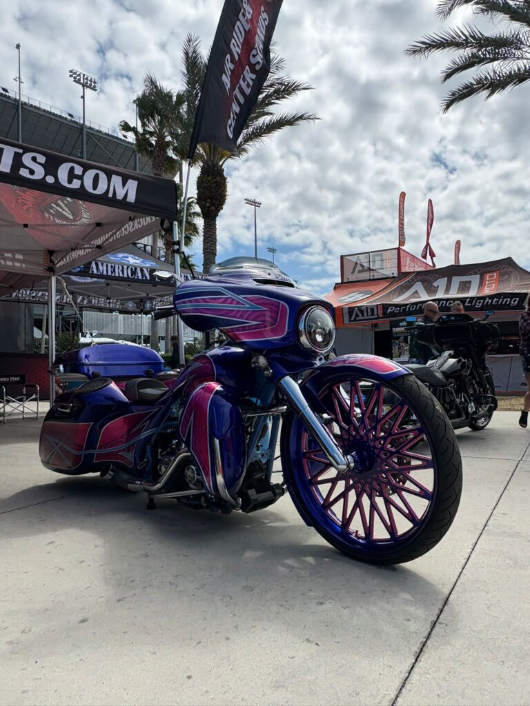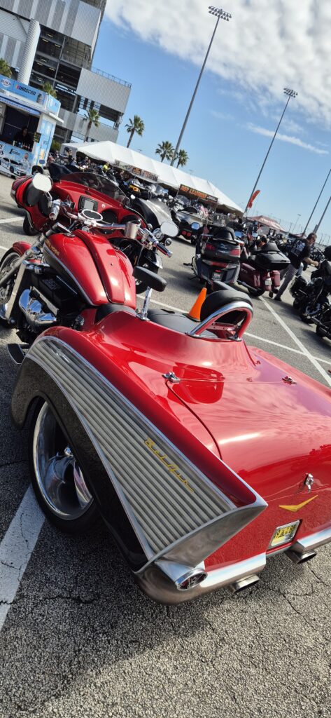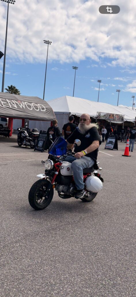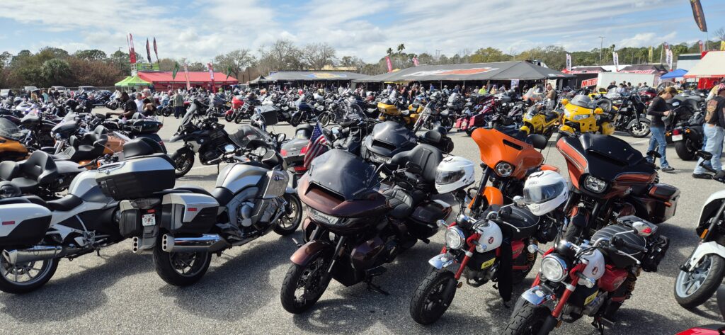 Daytonassa oli myös Bike Week, jokavuotinen tapahtuma jo 85. kerran. Se keräsi porukkaa ympäri maata. Pyöriä oli laidasta laitaan ja tuhansia, mutta suurin osa tietenkin HD:tä. Ja oli siellä pari Mankiakin… siis meidän lisäksi. Pari vanhaa pappaa oli tulleet juuri samanlaisilla kuin meillä. Eipä keretty juttusille. Mutta ainoat, jotka todella erottuivat joukosta!