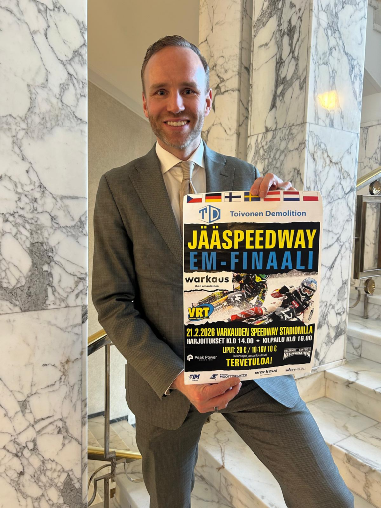 Suomen liikunta-, urheilu- ja nuorisoministeri Mika Poutala (KD) toimii virallisena tapahtumasuojelijana kansainvälisessä huipputason moottoriurheilutapahtumassa, jääspeedwayn EM-finaalissa, joka järjestetään 21. helmikuuta 2026 Varkauden Speedwaystadionilla.