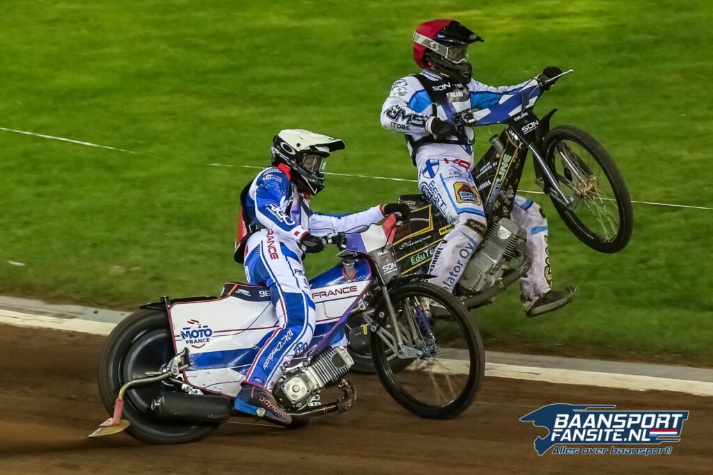 Jessellä tilannetta Suomen toisessa erässä. Pyörä hyppää sisäreunasta pystyyn, mutta Jessen ja Ranskan Dimitri Bergen taitava ja nopea reagointi esti törmäyksen. Jessee hylättiin erästä vaarallisen ajon vuoksi.