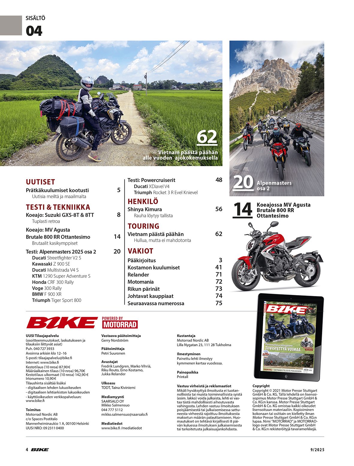 Osta Bike powered by Motorrad + MP Maailma lehtipisteestä tai tee tilaus tästä. Voit myös lukea lehteä digitaalisena tästä.